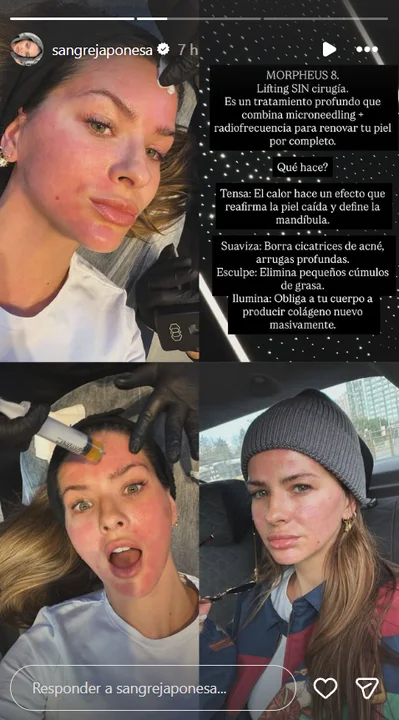 Se trata de "MORPHEUS 8", un lifting sin cirugía: "Es un tratamiento profundo que combina microneedling + radiofrecuencia para renovar tu piel por completo", escribió en sus redes.