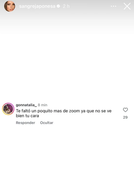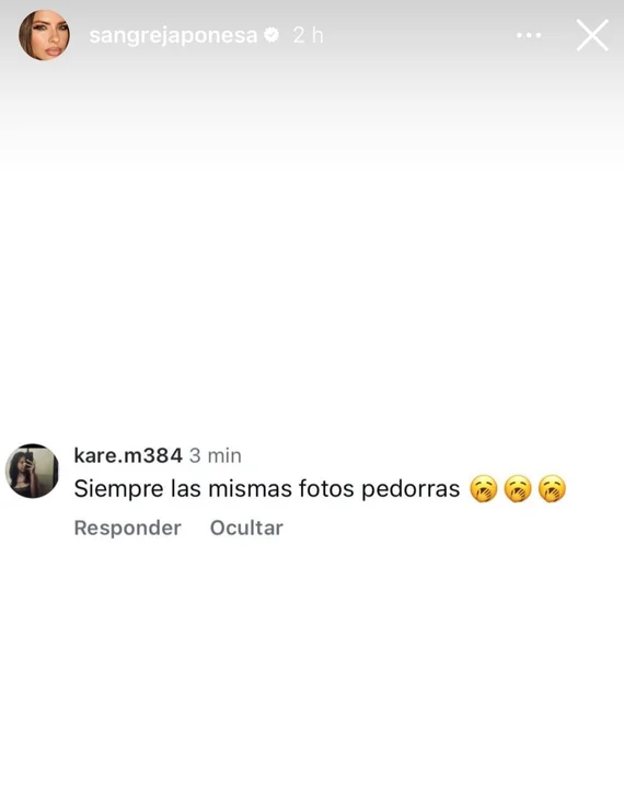 Minutos después, compartió capturas de los comentarios que recibió y las caras de las chicas que le escribieron haciendo referencia a que ninguna es perfecta, entre ellos: "Te faltó un poquito más de zoom, ya que no se ve bien tu cara", "Siempre las mismas fotos pedorras", "Vómito" y "Esas pestañas y esa boca", todos cargados de tono burlón o despectivo.