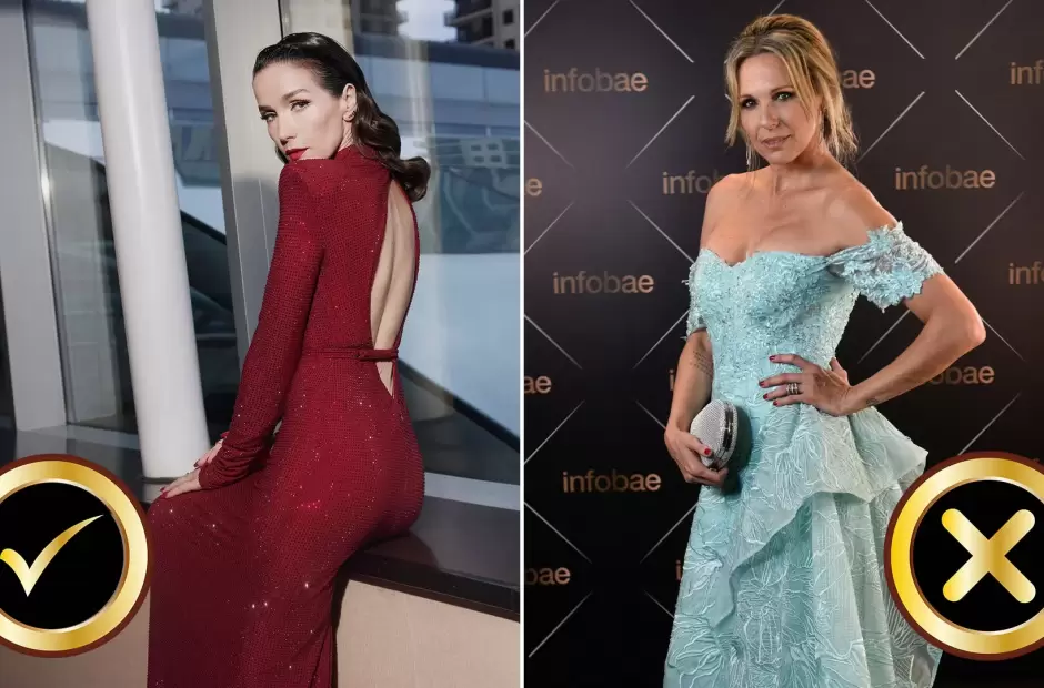 Las últimas en llegar fueron las divas máximas de la televisión. Susana Giménez, con un vestido negro y dorado y Mirtha Legrand con un vestido azul de Iara, acompañada por su hija Marcela Tinayre, su nieta Juana Viale (vestida por Gino Bogani) y su bisnieta Ámbar de Benedictis, vestida por Verónica de la Canal.