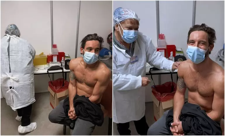 El posteo de Instagram estuvo acompañado de una seguidilla de fotos del momento. Pero lo que llamó la atención de su más de un millón de seguidores fue que el actor se quitó la remera para recibir la inyección. Los usuarios no pasaron por alto el detalle y emitieron todo tipo de comentarios: desde halagos para él hasta elogios para la enfermera.