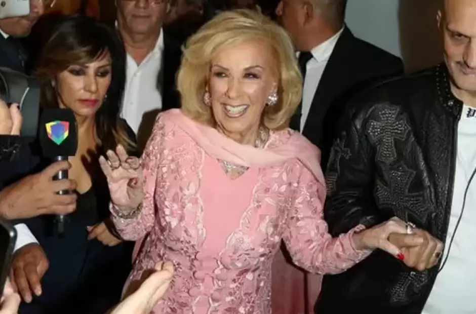 Para la ocasión, Mirtha eligió un vestido con mangas en color rosa pastel con un detalle bordado en encaje blanco. A la altura de la cintura, el modelo cuenta con tres botones que acentúan la figura. Además, combinó la apuesta con un chal en el mismo tono, aritos y un collar de brillantes.