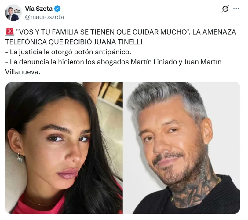 Juanita Tinelli, hija de Marcelo Hugo, generó revuelo al exponer que sufrió amenazas de muerte de parte de una persona, según Laura Ubfal, cercana a la familia. A raíz de la llamada que recibió la modelo, tomó la decisión de realizar una denuncia en la Unidad Fiscal del Ministerio Público Fiscal.
