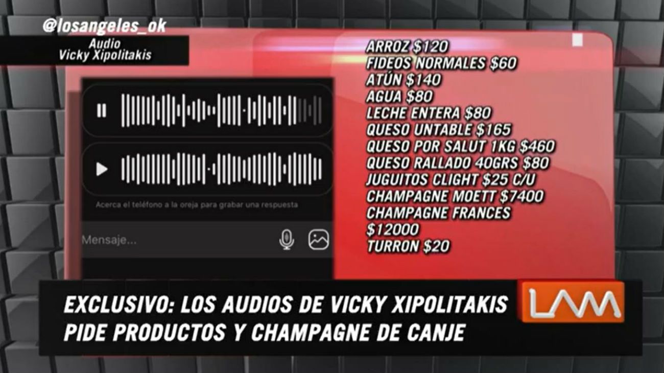 El jueves 13, Vicky Xipolitakis (34) se convirtió en tendencia luego de que trascendiera un audio en el que se la escucha pedir una lista de alimentos y bebidas a un almacén en la modalidad de canje, y la situación dio inicio a la polémica.