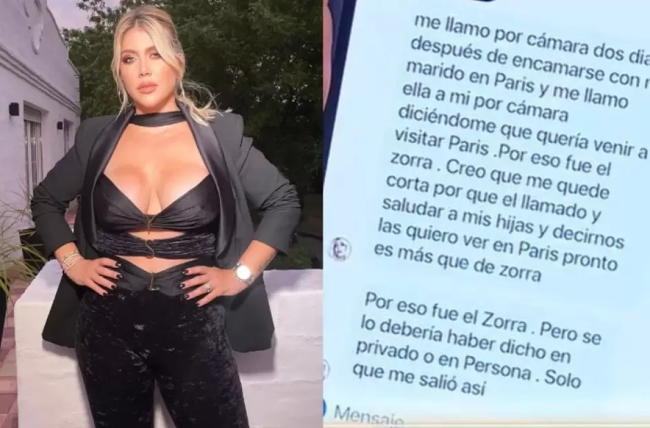 El mensaje que incluso mostró al aire decía: “[La China] me llamó por cámara dos días después de encamarse con mi marido (Mauro Icardi) en París. Y me llamó ella por cámara diciéndome que quería venir a visitar París, por eso fue el 'zorra'”, escribió la empresaria en un mensaje vía Instagram.