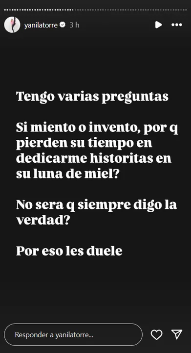 "Tengo varias preguntas. Si miento o invento, ¿por qué pierden su tiempo en dedicarme historias en su luna de miel? ¿No será que siempre digo la verdad? Por eso les duele", continuó.