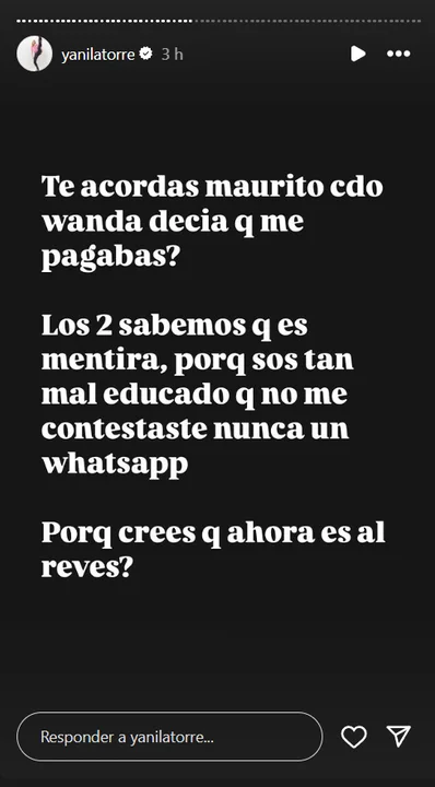 "¿Te acordás Maurito cuando Wanda decía que me pagabas? Los dos sabemos que es mentira porque sos tan maleducado que nunca me contestate un Whatsapp. ¿Por qué crees que ahora es al revés?".