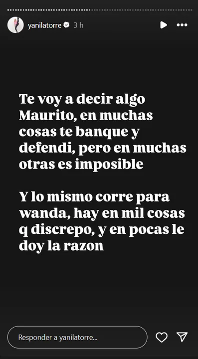 "Te voy a decir algo Maurito, en muchas cosas te banqué y defendí, pero en muchas otras es imposible. Y lo mismo corre para Wanda, hay mil cosas en las que discrepo y pocas que le doy la razón", sostuvo.