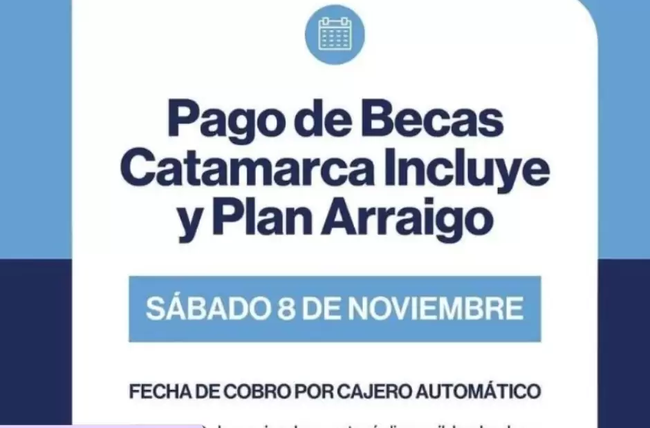El Ministerio de Trabajo, Planificación y Recursos Humanos de la provincia informó el cronograma de pago correspondiente a las becas "Catamarca Incluye" y "Plan Arraigo", dos programas que forman parte de la política pública de acompañamiento social, educativo y productivo impulsada por el Gobierno provincial.