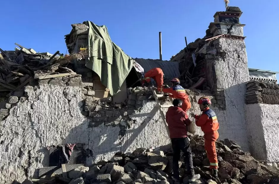 Un video emitido en la emisora estatal CCTV mostró a rescatistas vestidos de naranja escalando montones de escombros que bloqueaban casas en un pueblo gravemente dañado, mientras trozos caídos de edificios llenaban las calles y aplastaban autos en otras áreas. Los medios estatales informaron de unas 1.000 casas dañadas, citando la oficina de rescates para terremotos del Tíbet.