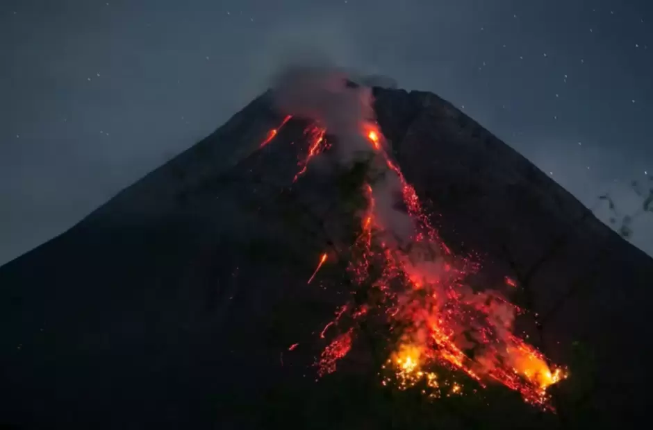 Merapi es el más activo de los más de 120 volcanes en todo el país. La erupción del domingo es la más reciente desde que las autoridades elevaron su nivel de alerta al segundo más alto en noviembre de 2020, después de que los sensores detectaran una mayor actividad. Las autoridades recomendaron a la población que vive en las laderas del volcán que se mantuvieran mínimo a 7 kilómetros de distancia de la boca del cráter y se mantengan alertas ante las posibles amenazas del flujo de lava.