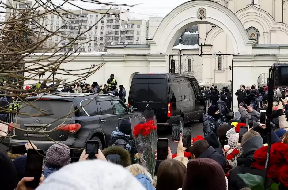 Sus colaboradores, su viuda y los países occidentales acusan al presidente ruso, Vladimir Putin, de ser responsable de su muerte, lo que niega el Kremlin. El servicio religioso se celebra en una iglesia en Marino, un distrito en el sudeste de la capital rusa donde vivía el opositor antes de ser encarcelado.