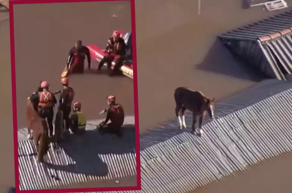 Rescatistas se movilizaron para salvar a un caballo que había quedado aislado sobre un tejado en Canoas: lograron acostar al animal llamado por su color “Caramelo” en un bote inflable, según imágenes transmitidas en vivo en televisión.