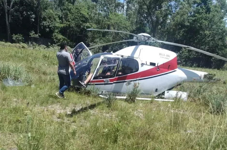 El helicóptero de la empresa Heli-Rio se accidentó en la mañana de este miércoles en Recreo dos Bandeirantes, en la zona oeste de Río. La aeronave cayó en un terreno baldío.