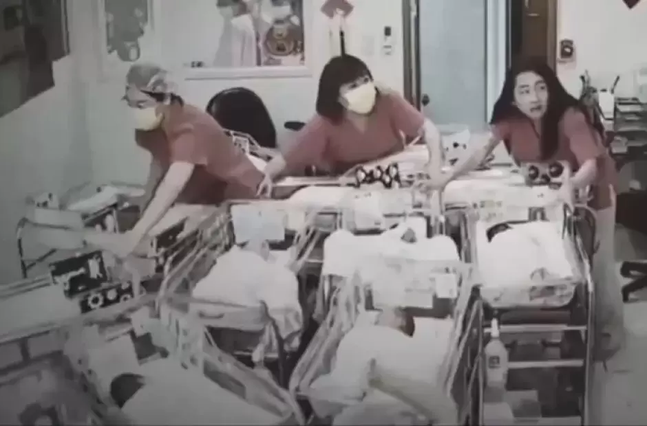 Imágenes capturadas desde una cámara de seguridad en un hospital de Taiwán mostraron el momento en que el personal de maternidad aseguraba a los bebés recién nacidos en cunas durante el terremoto que sacudió a Taiwán el miércoles.