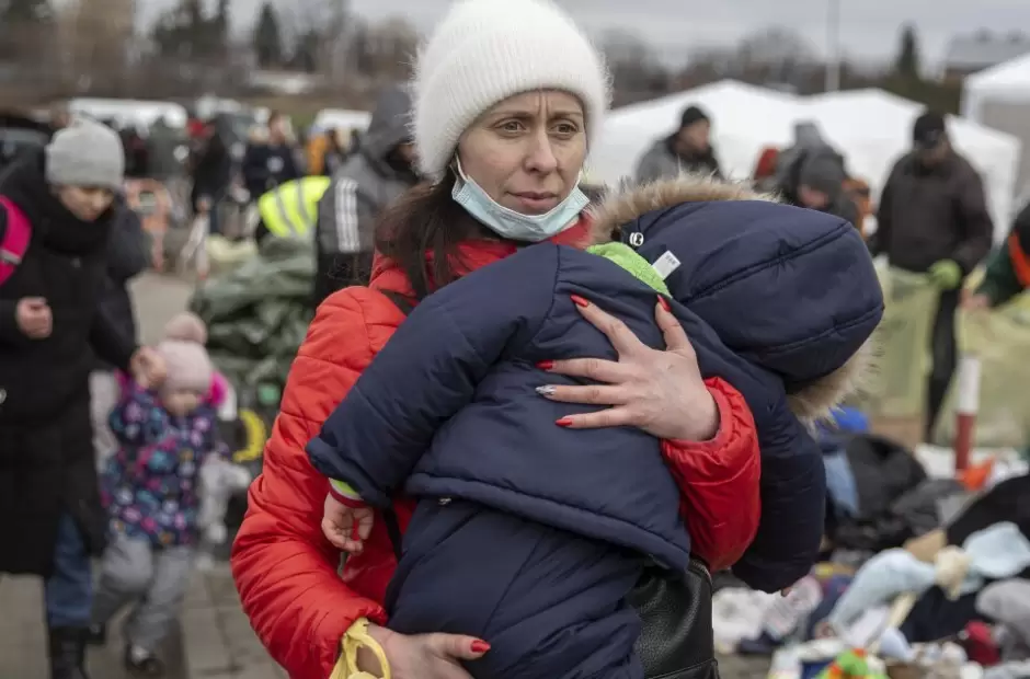Una mujer llora al abandonar la región de Donbas. Foto: AFP