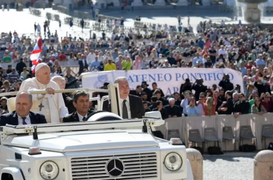Como cada semana el Santo Padre leugo de su audiencia y catequesis de los miércoles suele recorrer la Plaza de San Pedro para saludar a los fieles que se convocan para verlo y estar más cerca de él. En la jornada de hoy se dio un particular intercambio con un grupo de seminaristas de los legionarios de Cristo quiene saludaron al Pontífice y le consultaron sobre cómo se sentía de la rodilla. Recordemos que por la afección de artrosis que padece fue indicado por los médicos para que no camine y desde allí se maneja en sillas de rueda.