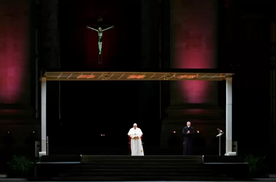 La imagen extraordinaria y solitaria de Francisco en medio de la plaza de San Pedro vacía en la ceremonia del Vía Crucis fue el emblema el año pasado de la tragedia mundial desatada por la pandemia de coronavirus, en la que el líder de los 1.300 millones de católicos habló de “la hora más oscura” ante el drama de la muerte por contagios de covid-19.