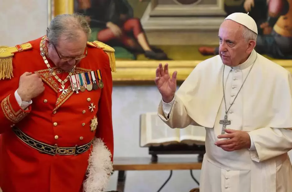 Algunos caballeros de la Orden se oponen y piden al papa que intervenga. Francisco envía una comisión de investigación y obtiene la dimisión del Gran Maestre, cuyas decisiones son anuladas, según el sitio de información religiosa Korazym.