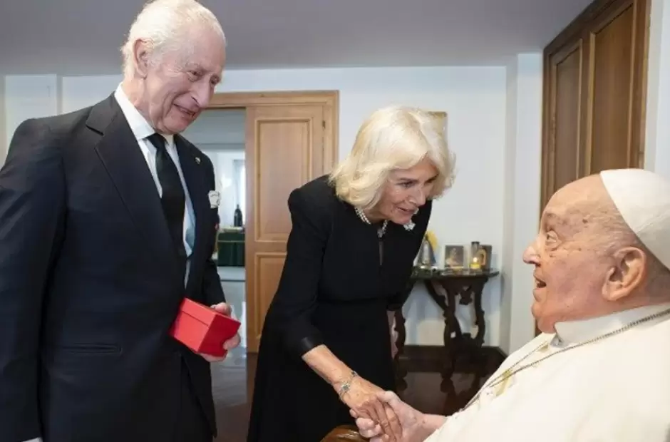 "El papa Francisco se ha reunido esta tarde en privado con Sus Majestades, el Rey Carlos y la Reina Camilla. Durante el encuentro, el Papa ha expresado sus mejores deseos a Sus Majestades con motivo de su aniversario de boda y ha correspondido a los deseos de Su Majestad de una pronta recuperación de su salud", señaló la Oficina de Prensa de la Santa Sede.