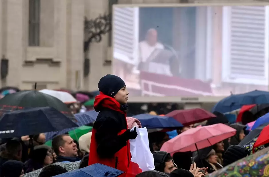 Ante una multitud que se refugiaba con paraguas y como podía de una ligera pero persistente lluvia que batió la plaza de San Pedro, el papa Francisco dijo al concluir el rezo del Angelus que "la comunidad internacional lucha porque sea respetado el derecho humanitario".