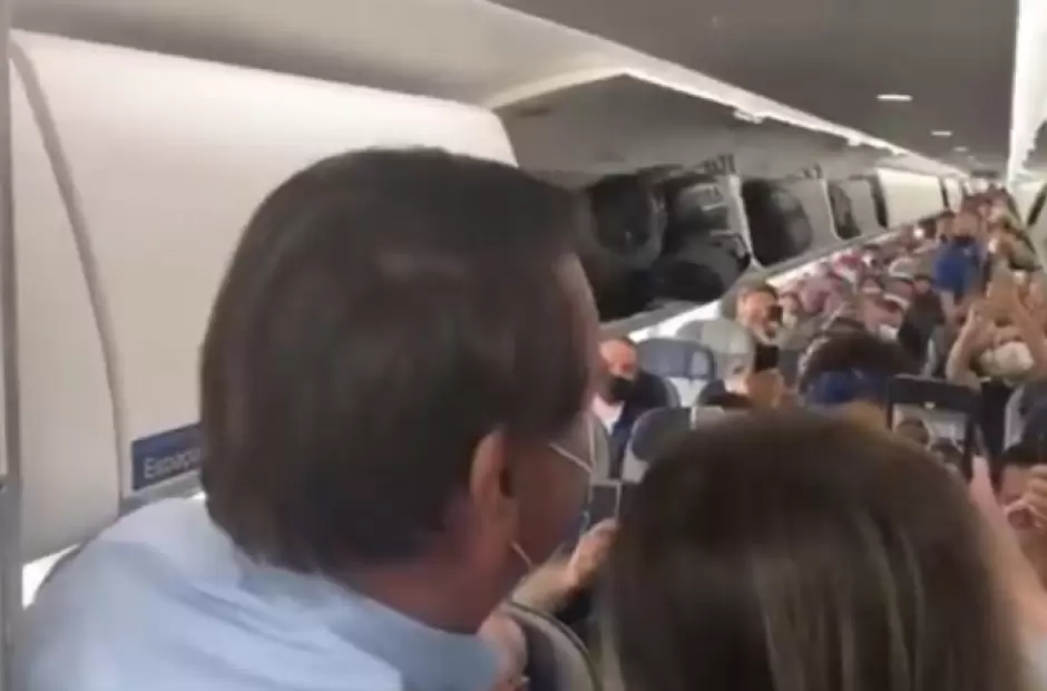 "¡Genocida!" y "¡Fuera Bolsonaro!" fueron algunas de las frases que dijeron las personas que estaban en la aeronave cuando ingreso el presidente, en un episodio que se viralizó por redes sociales.