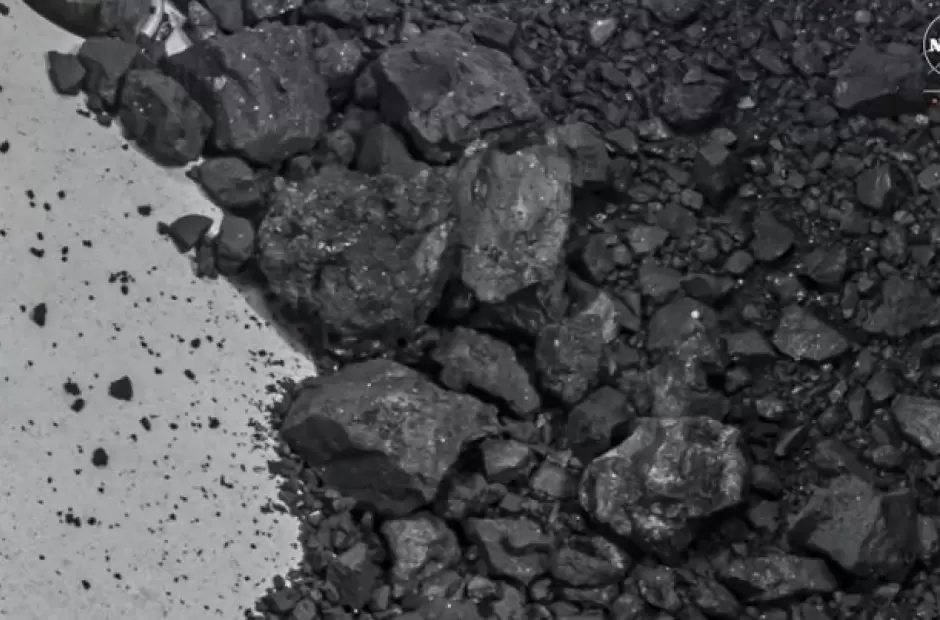 La imagen mostraba un grupo suelto de pequeñas rocas, guijarros y polvo de color carbón que quedaron en la parte exterior del conjunto de recolección de muestras cuando el suelo del asteroide fue succionado a través de un filtro hacia el recipiente de almacenamiento de la nave espacial.