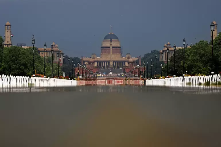 Rajpath, el bulevar ceremonial de la India, en Nueva Delhi, está desierto el 27 de abril de 2020. (Foto AP / Altaf Qadri)