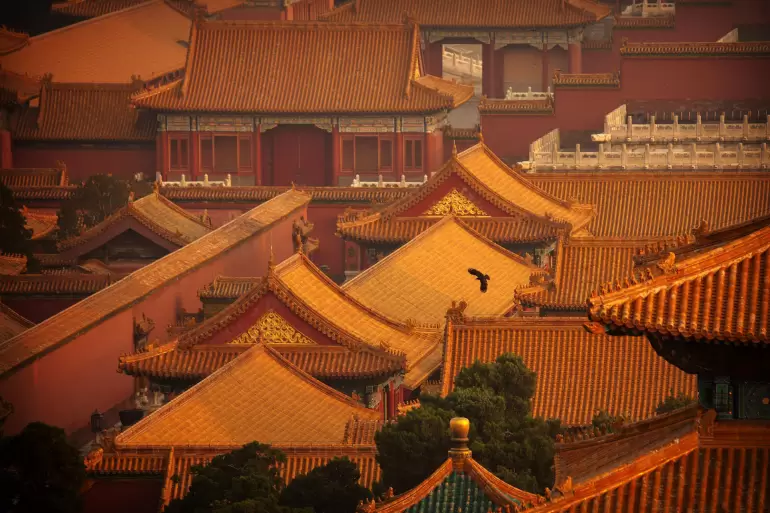 Un pájaro vuela sobre la Ciudad Prohibida, que está cerrada al público debido al brote de coronavirus, en Beijing, China, el martes 28 de abril de 2020 (AP Photo / Mark Schiefelbein)