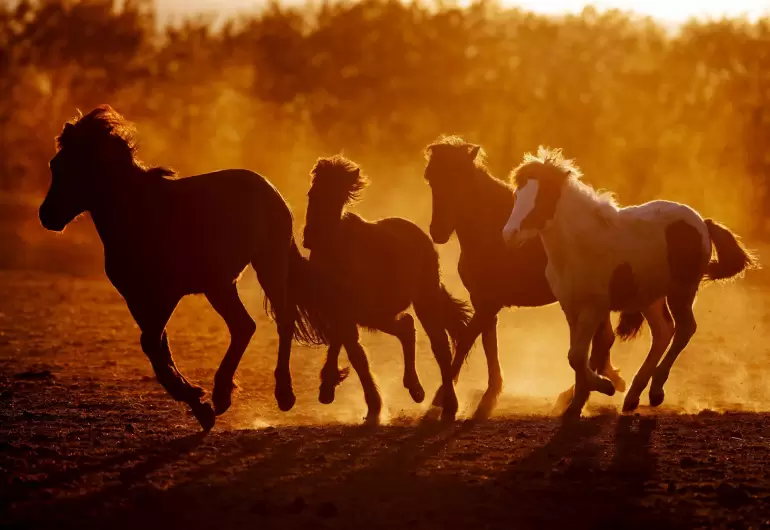 Sementales islandeses corren en una granja en Wehrheim, cerca de Frankfurt, Alemania, el martes 21 de abril de 2020. (Foto AP / Michael Probst)