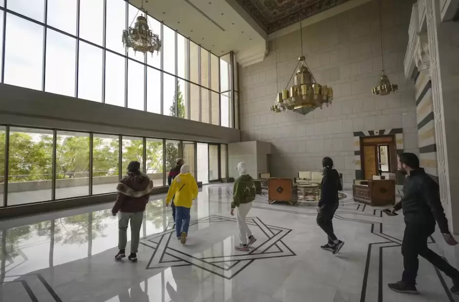 Un video de otro palacio, el de Muhajreen, verificado por Reuters, mostraba a grupos de hombres y mujeres caminando por un suelo de mármol blanco y atravesando altas puertas de madera. Un hombre llevaba un jarrón en la mano y un gran armario estaba vacío con las puertas entreabiertas.