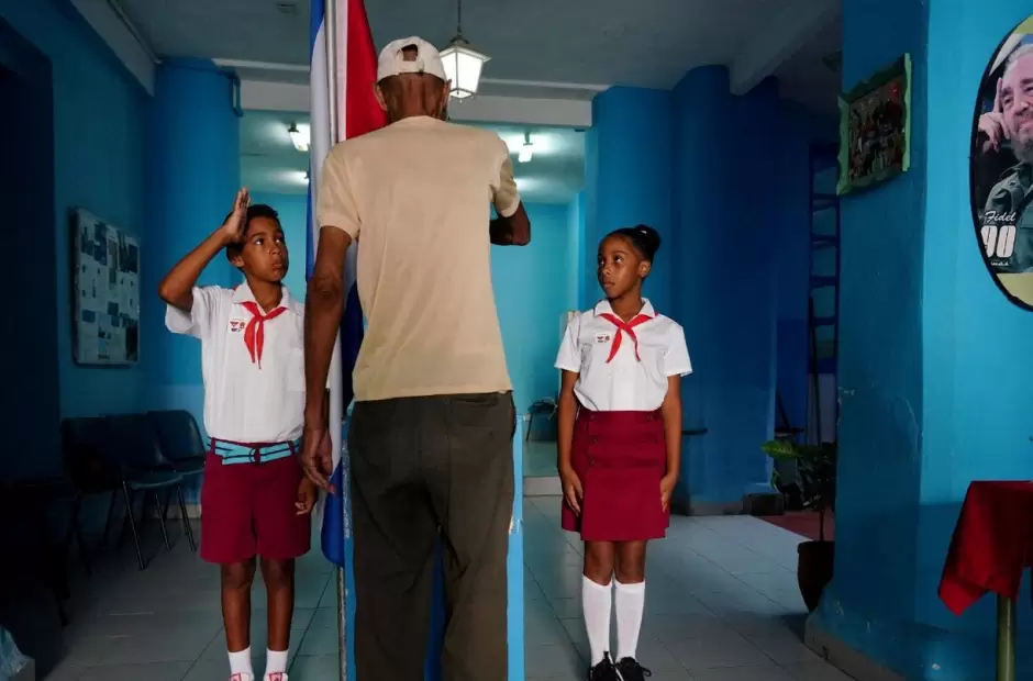En camiseta azul con una bandera cubana bordada en el pecho, el mandatario depositó la papeleta en una urna custodiada por dos niños vestidos con su uniforme de escuela, algo tradicional en el sistema de votación de la isla.