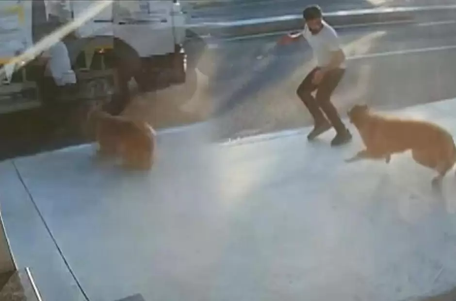 Un hombre fue atropellado por un camión después de que lo asustara un perro. La escena sucedió este lunes en Estambul (Turquía) y fue registrada por un cámara de seguridad de una propiedad, de acuerdo con medios locales.