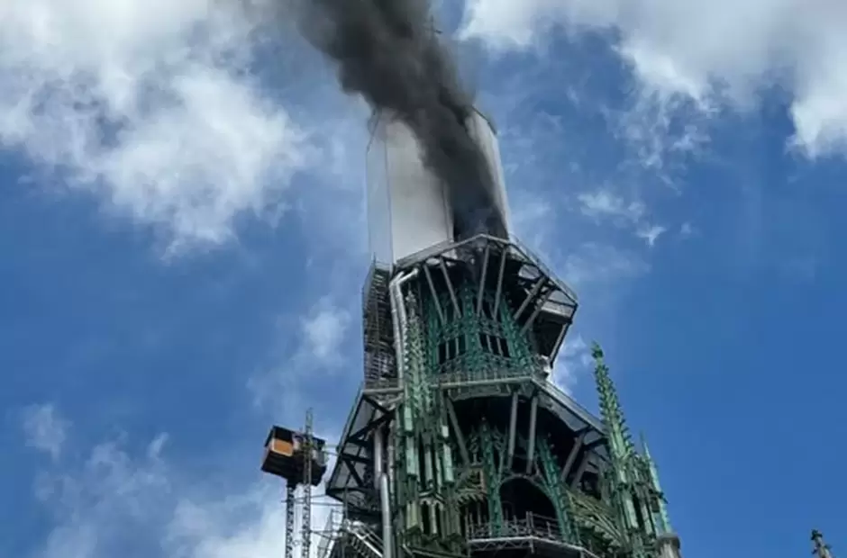 El monumento “está siendo restaurado”, añadió. Un humo espeso surgía de una plataforma donde se realizaban los trabajos, según imágenes de televisión, aunque algunos testigos indicaban que la humareda había perdido intensidad hacia las 12.30 (10.30 GMT).