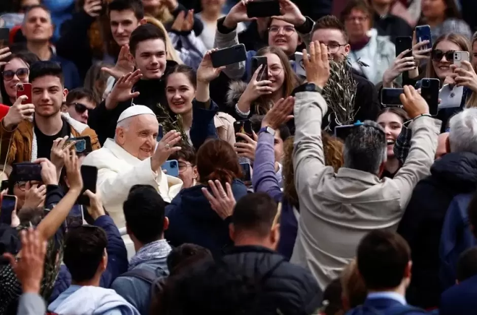 Luego de haber recibido el alta el sábado del hospital romano en el que estuvo internado tres días por una bronquitis, el papa Francisco presidió este domingo la misa de Ramos desde la Plaza San Pedro en el Vaticano, con más de 60.000 fieles de todo el mundo con sus ramas de olivo y palmas.