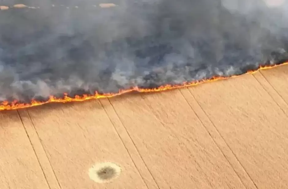 El Ministerio de Defensa de Ucrania publicó una imagen este viernes en la que se ve cómo el fuego arrasa un campo sembrado y responsabilizó a Rusia por la crisis alimentaria mundial.