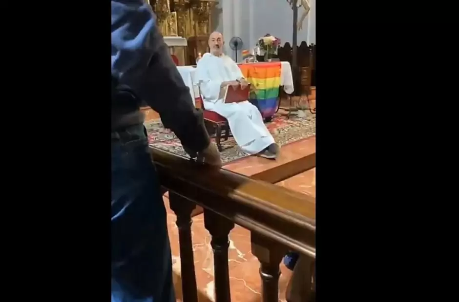 El episodio quedó registrado en videos difundidos en redes sociales, donde se observa al joven levantarse, señalar al párroco y lanzar una serie de acusaciones cargadas de tono doctrinal y contenido político. "La homosexualidad no es un delito, pero sí es pecado. Estáis vendidos al diablo por 30 monedas. Sois una panda de traidores, una cueva de ladrones", gritó ante los presentes, dirigiendo sus reproches a los frailes dominicos responsables del templo, ubicado en la calle San Vicente.
