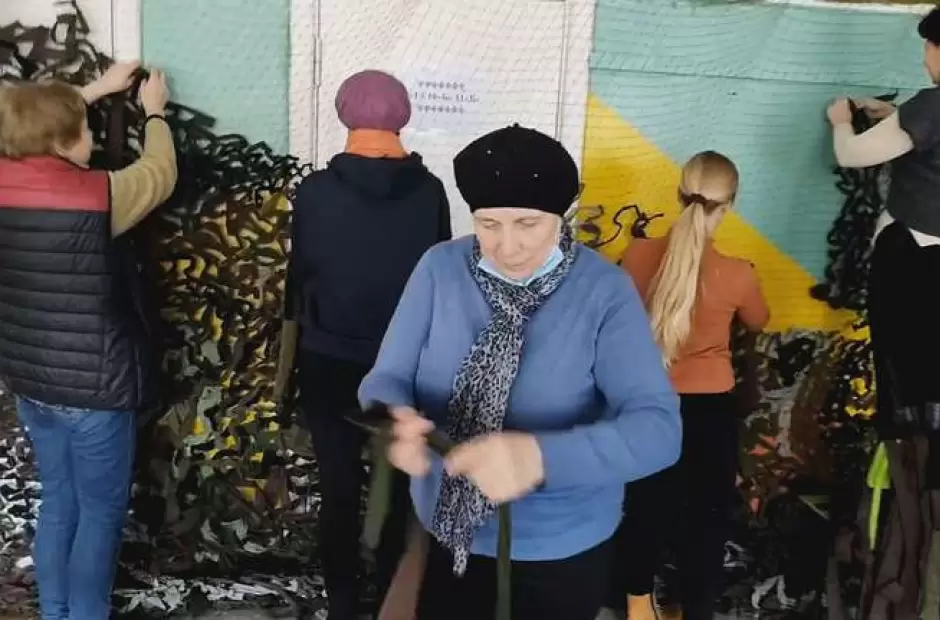 Según dijo, hace una semana que ya no se dictan clase, pero los niños y la comunidad escolar siguen yendo para ayudar a la resistencia ante el invasor. “Se sienten movidos por el deber hacia su país y sus tropas”,explicó Amoroso mientras en la cámara se podía ver como un grupo de mujeres armaba una red de camuflaje con tiras de tela en una pared.