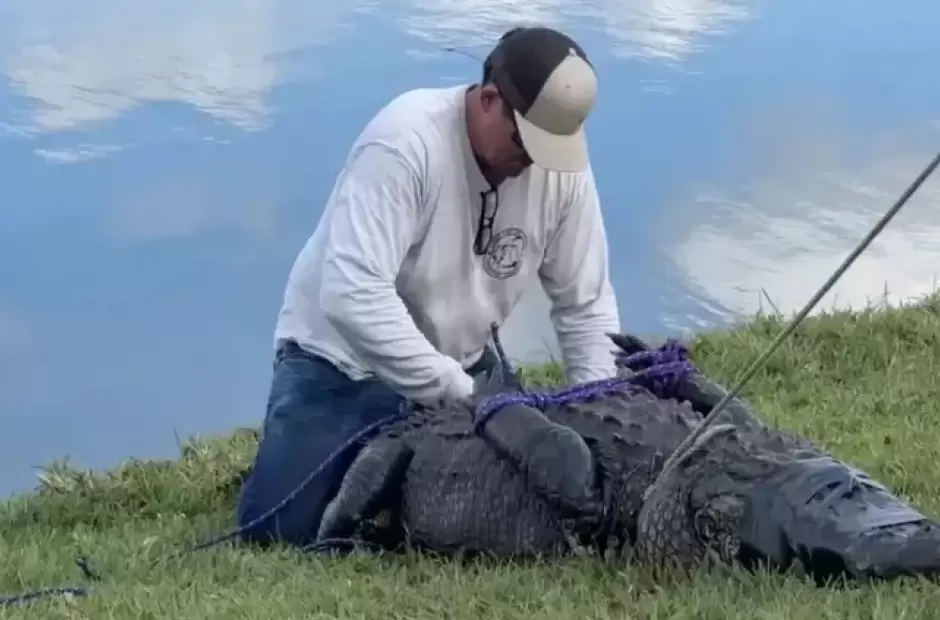 El experto en caimanes Robert Lilly capturó al caimán, que mide entre tres y cuatro metros y pesa alrededor de 300 kilogramos. “Definitivamente fue una pelea”, detalló el especialista al respecto y explicó: “Lo enganchamos en el fondo. Nunca salió a la superficie. Se quedó abajo todo el tiempo. Pudimos clavarle un segundo anzuelo y un sedal duro para que pudiera subir”.