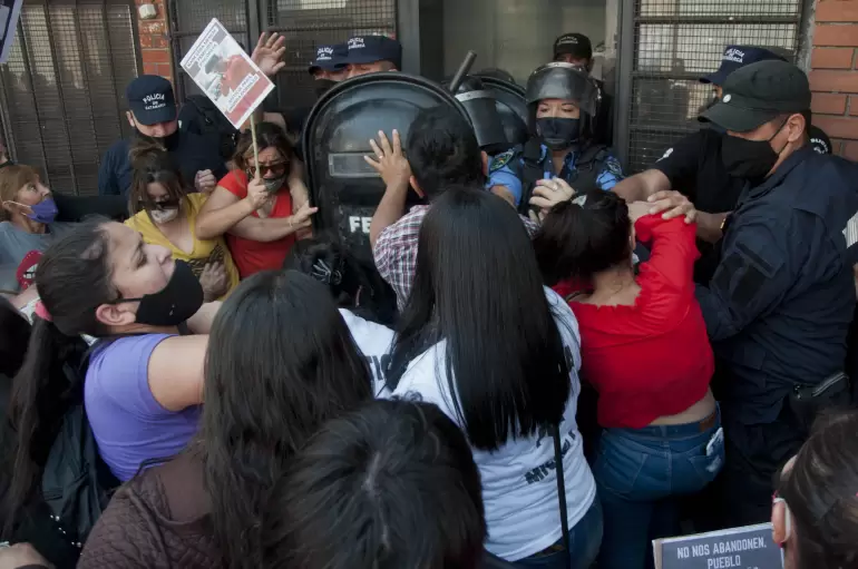 Sin embargo, las marchas por Brenda, que se habían caracterizado por ser pacíficas, en un determinado momento, el reclamo se tornó violento. Unas personas que acompañaban a los familiares intentaban aparentemente ingresar al edificio judicial y comenzaron a empujar a la madre de Brenda y a sus hijos, quienes estaban al frente de la manifestación con el pasacalle “Justicia para Brenda”, al punto que llegaron a ponerlo cara a cara con los efectivos policiales, que custodiaban el lugar.