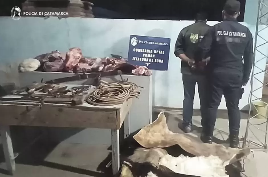 Allanaron una vivienda en Pomán y allí encontraron carne de origen vacuno y armas blancas. Un hombre de 37 años fue arrestado y quedó a disposición de la Fiscalía.