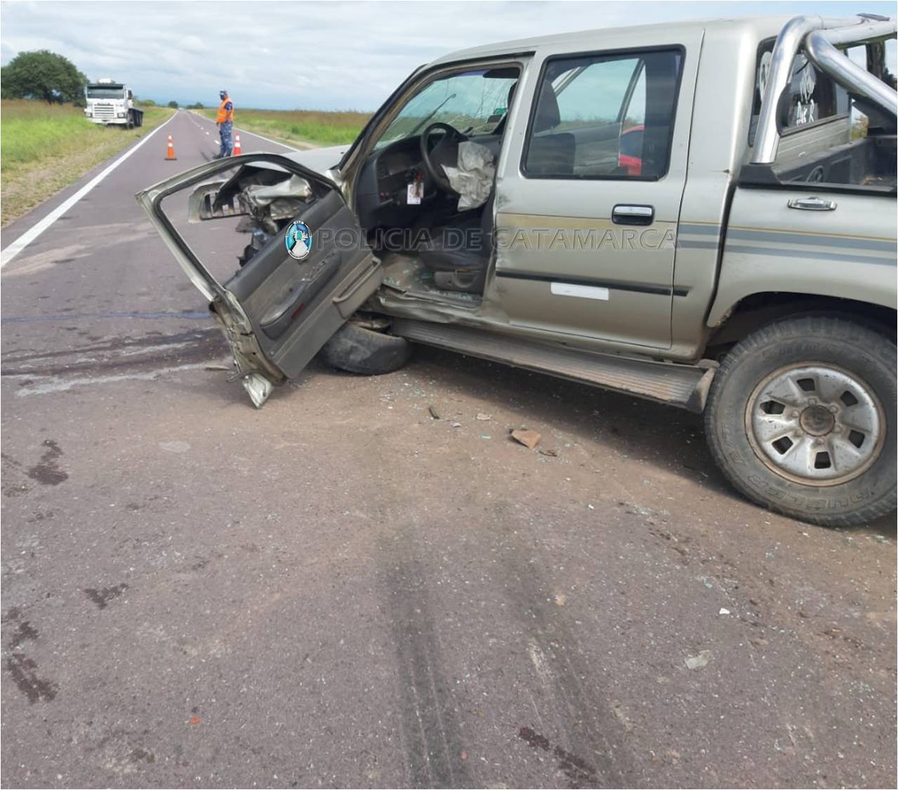 Walter Néstor Iñigo (43), circulaba en un camión Volkswagen 19420, dominio AA967HP, de color blanco, y por razones que se tratan de establecer colisionó con una camioneta Toyota Hilux gris, dominio ESI-517, al mando de José Mario Roso (79).