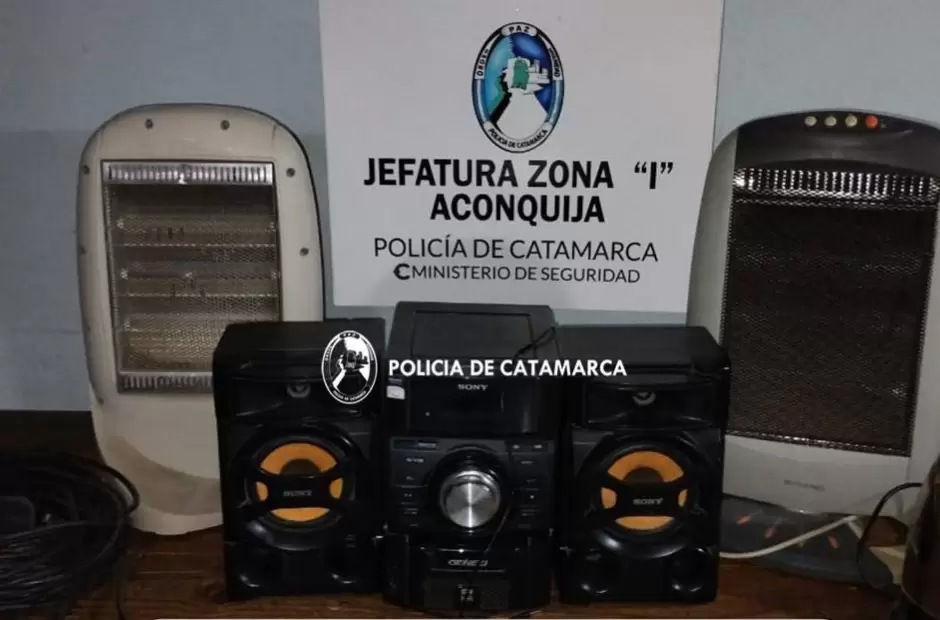 En  las últimas horas en la Comisaría de Aconquija, un hombre de 56 años de edad denunció que personas desconocidas previo a violentar una ventana, habrían ingresado a su vivienda ubicada en el Paraje La Alumbrera. Del lugar le sustrajeron un (01) equipo de música Sony, una (01) pava eléctrica de acero inoxidable, un (01) prolongador de corriente de unos 70 metros, un (01) multitoma de 3 metros y dos (02) calefactores alógenos, de color gris, para luego darse a la fuga.