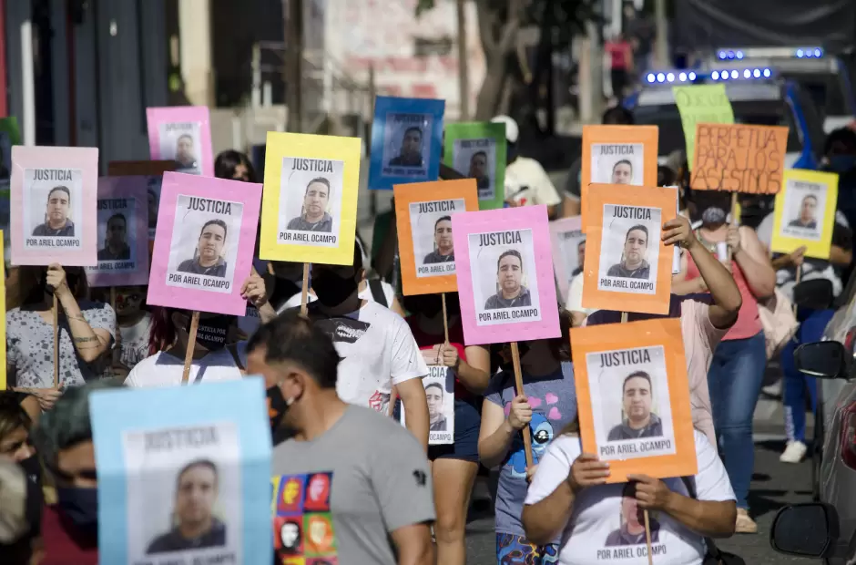 Acompañados con pancartas y carteles, algunos con la imagen de Ariel y otros con el rostro de los asesinos a los que acompañaban la leyenda “justicia” y “prisión perpetua”, respectivamente, los manifestantes marcharon en silencio. Al llegar al frente del edificio de la Legislatura de la provincia, los manifestantes se detuvieron un momento y, al grito de “justicia” por Ariel, recordaron al joven asesinado.