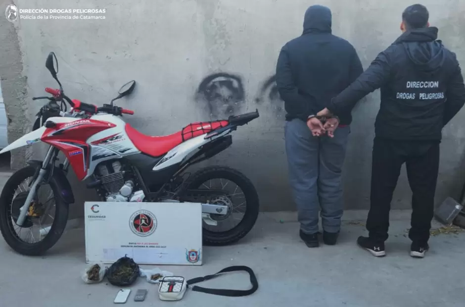 Al irrumpir en las viviendas, los policías secuestraron una sustancia herbácea compuesta por hojas, flores y tallos, que al ser sometida a la prueba de campo correspondiente arrojó resultado que se trataría de unos 420 gramos de marihuana, como así también hicieron propio con semillas de la variedad cannabis sativa, un blíster con siete comprimidos de Alprazolam 2 Mg., siete plantines de la variedad cannabis sativa, una balanza de precisión, una balanza digital, un teléfono celular iPhone 13 y una motocileta Honda Rally 300 cc., de colores rojo y blanco.
