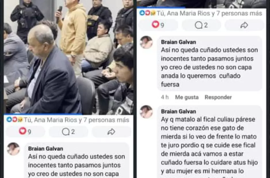 Tras conocerse la condena, un usuario de Facebook identificado como "Braian Galván" publicó amenazas directas contra el fiscal. "Hay que matarlo al fiscal c... ese. Parece que no tiene corazón, si lo veo de frente lo mato", escribió en la red social.