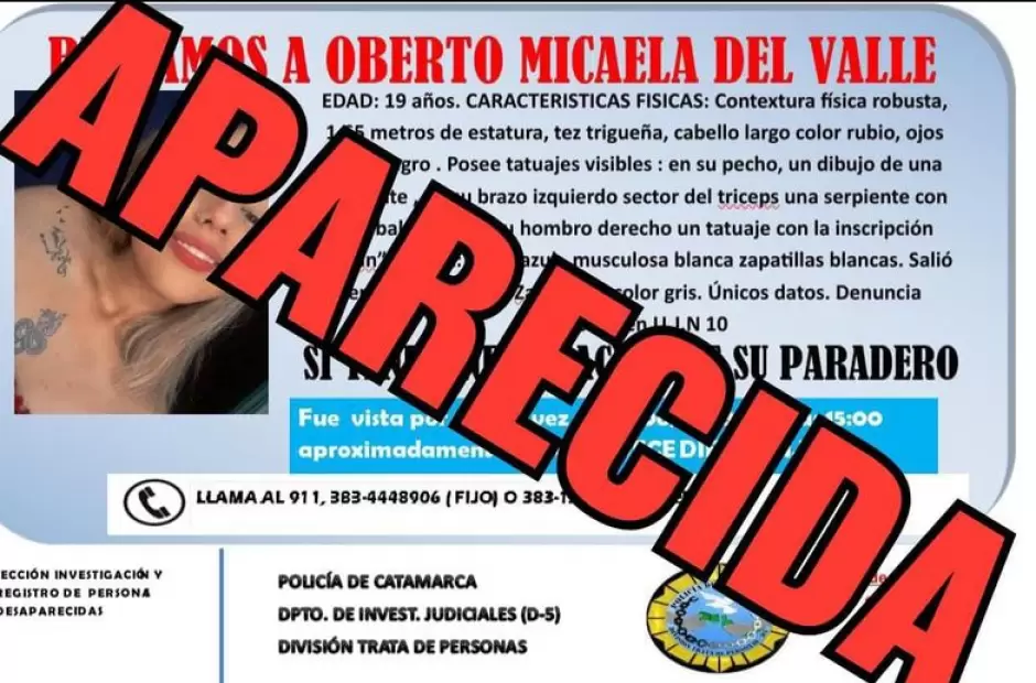 Micaela del Valle Oberto era buscada intensamente y su familia había radicado la denuncia en la Unidad Judicial N°10.