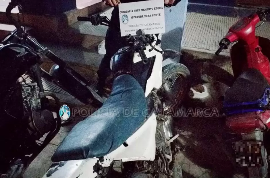 A las 17:30 de la tarde de ayer, alertado por un llamado telefónico, personal de la Comisaría Departamental Fray Mamerto Esquiú se hizo presente en la calle Matadero Viejo de la localidad de La Tercena de ese departamento, y procedió a la aprehensión de cuatro sujetos de apellido Leiva (19), y tres de apellido Peñaflor (25), (33) y (39), y una joven mujer de apellido Rodríguez (23), quienes circulaban a bordo de tres motocicletas Maverick 200 cc., una Yamaha Crypton 110 cc., y una Honda CB1 150 cc., que quedaron en calidad de secuestro.