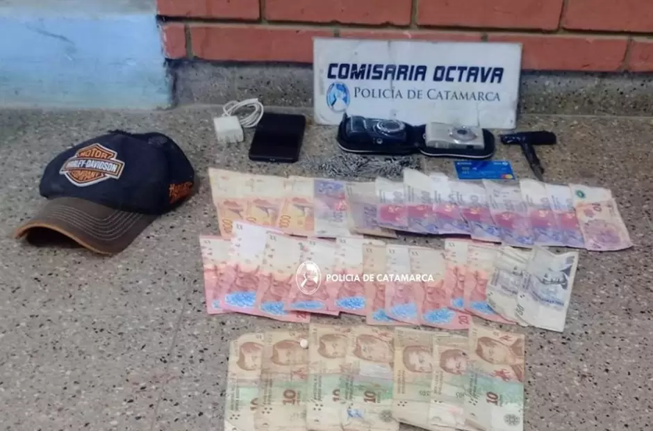 Después de esto, se realizó un palpado superficial a este hombre identificado como Castillo, y como resultado de este palpado, los policías encontraron entre sus prendas de vestir dos cámaras de fotos, un teléfono celular Microsoft, con su respectivo cargador, una arma blanca tipo ganzúa, una tarjeta de crédito, un collar de metal y $4.370 en efectivo, todos estos objetos quedaron en calidad de secuestro.