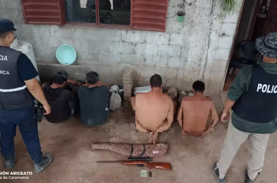 Por otro lado, secuestraron una carabina calibre 22 y cinco cartuchos del mismo calibre, al igual que una camioneta Ford F-100 roja. Finalmente procedieron al arresto en averiguación del hecho de dos jóvenes de 21 y 22 años y de dos hombres de 34 y 42 años de edad, quienes quedaron alojados en dependencias policiales a disposición de la Justicia interviniente.