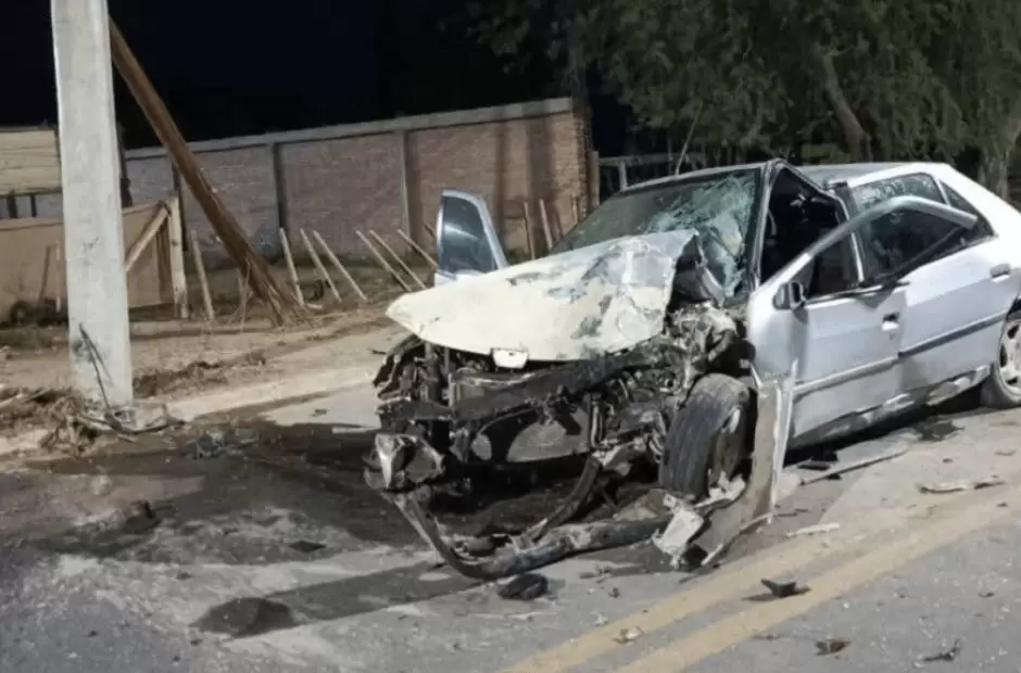 El automóvil involucrado sufrió serios daños estructurales, producto del choque directo contra el poste de alumbrado. La escena posterior al impacto dejó en evidencia la magnitud del siniestro, con el rodado visiblemente destruido en gran parte de su carrocería.